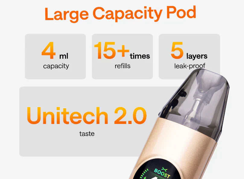 The OXVA NeXLIM pod kit comes with two NeXLIM Replacement Pod Cartridges in a 0.6ohm and 0.8ohm resistance. Each 2ml pod features dual mesh coil technology for a boosted flavour and double lifespan. The 0.6ohm is designed for RDL (restricted direct to lung) and MTL (mouth to lung) vapers and pairs well with freebase and nic salt. The 0.8ohm is for MTL (mouth to lung) users and should be used with 50VG/50PG nic salt. As you install your selected resistance, the kits smart tech will auto adjust to the best power output. You can further customise your inhale via the precise sliding airflow inlet, which pairs perfectly with its 0.01s auto draw function for a cigarette and disposable style draw.